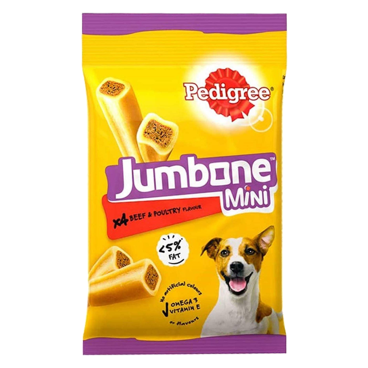 تشویقی سگ پدیگری مدل ژامبون (Jumbone) یک جایزه و میان وعده خاص برای سگ های بالغ است که به شما این امکان را می دهد که در حین پاداش دادن از سگ خود مراقبت کنید. فرمول خاص این تشویقی به حفظ سلامت دندان ها و لثه ها در هنگام جویدن کمک می کند و از تشکیل پلاک و تارتار جلوگیری می کند و باعث تمیز کردن عمیق سطوح پشتی دندان ها می شود. این تشویقی حاوی مقدار زیادی امگا 3 است که علاوه بر بدنی سالم باعث افزایش طول عمر در سگ ها می شود. ویتامین ها و مواد معدنی موجود باعث حفظ سلامتی و تقویت سیستم ایمنی نیز می شود. تشویقی پدیگری حاوی هیچ گونه رنگ مصنوعی و طعم دار اضافی نیست.
