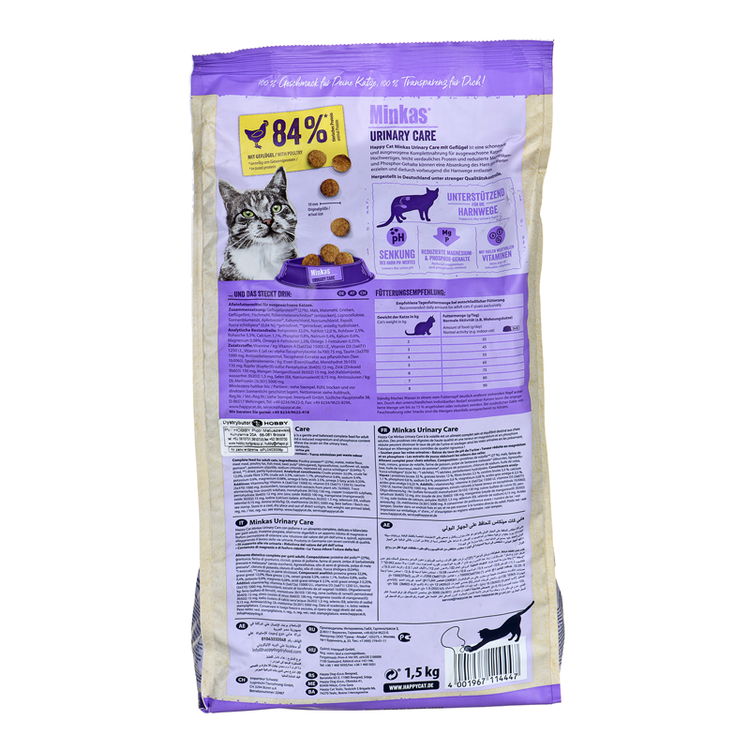 غذای خشک گربه هپی کت مدل Minkas Urinary Care وزن 1 کیلوگرم ( بسته بندی در زیپ کیپ پت شاپ لئو )