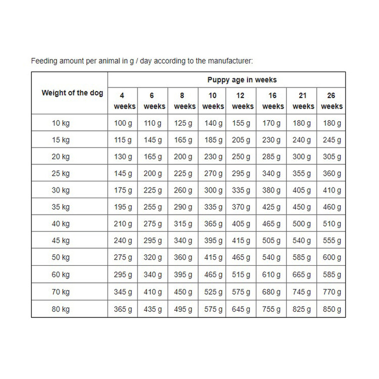 مقدار غذا باید به تدریج هر 2 - 3 روز یا هر هفته تنظیم شود تا زمانی که مقدار خوراک توصیه شده روی بسته بندی در گروه سنی مناسب به دست آید.
