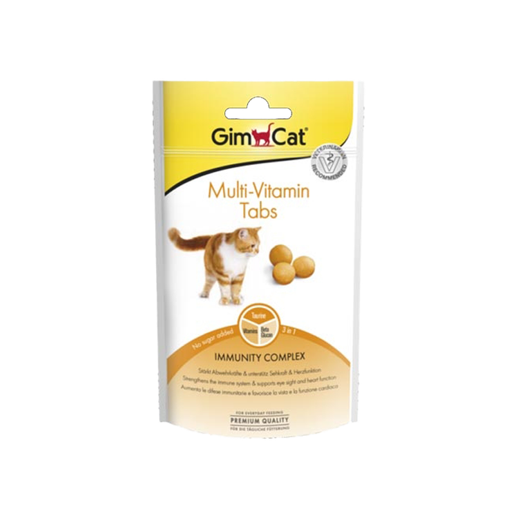 این قرص برای تمامی گربه های بالغ استفاده می شود و حاوی بسیاری از ویتامین های مهم و بتاگلوکان است. بتاگلوکان ماده بسیار ارزشمندی است که برای تقویت سیستم ایمنی فوق العاده موثر است. این خوراک با تورین غنی شده است که ماده ای بسیار موثر برای تقویت عملکرد قلب بوده و فواید بیشماری برای بدن حیوان دارد. این ماده همچنین بینایی را بهبود بخشیده و سبب افزایش قدرت دید گربه ها خواهد شد. مولتی ویتامین جیم کت در بسته بندی ۴۰ گرمی عرضه می شود.