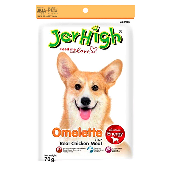جرهای املت یک میان وعده فوق العاده پر از مواد مغذی و ویتامین ها است تا بتواند سگ شما را سالم و قوی کند، با طعم مرغ وسوسه انگیز که سگ شما قادر به مقاومت در برابر آن نخواهد بود. این تشویقی یک میان وعده ی بسیار مغذی است که برای تمامی نژادهای سگ مناسب است. JerHigh Omelete پاداش کاملی است که سگ مورد علاقه شما سزاوار آن است. پرشین پت شاپ این افتخار را دارد تا این محصول بی نظیر، با کیفیت، لذیذ و سالم را در سراسر کشور پخش و توزیع کند