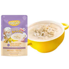 پوچ برند موچی / Moochie مدل آبگوشت خامه ای با مرغ و کالاماری (ماهی مرکب) در بسته بندی ۴۰ گرمی است.این محصول دارای فقط ۱۶ کیلوکالری در هر بسته ی ۴۰ گرمی آن است.مواد تشکیل دهنده این پوچ شامل آب مرغ، سینه مرغ، کالاماری، شیر نارگیل، نشاسته تاپیوکا، گلیسین، تورین، تری کلسیم فسفات، صمغ سلولزی، صمغ گوار، زانتان گو است.