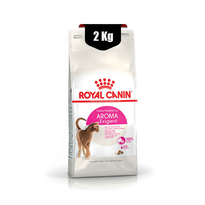 غذای خشک گربه آروما اگزیجنت رویال کنین (Royal Canin Cat Aroma Exigent) وزن 2 کیلوگرم مخصوص گربههای بدغذا میباشد. غذای خشک گربه آروما اگزیجنت رویال کنین برای گربههای بالغ (بالای 1 سال) تمامی نژادها قابل استفاده است. به منظور تحریک اشتهای گربههای بد غذا، در ساخت این محصول از پروتئین ماهی استفاده شده است که بسیار معطر میباشد. میزان کالری متعادل غذا، در دستیابی به وزن ایدهآل حیوان، نقش بسیار موثری دارد. غذای Aroma Exigent با سه فرمولاسیون متفاوت تولید شده است که سبب میشود حتی بدغذاترین گربهها نیز از خوردن آن استقبال کنند. هر سه فرمولاسیون بر روی گربههای بدغذای بسیار زیادی تست شده است.